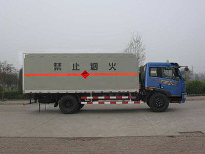 廂體頂部密封,不可開啟??蛇x裝無側(cè)門廂體。僅采用CA6DE3-18E3發(fā)動機(jī),運送爆炸品的品名:三硝基苯酚、環(huán)四次甲基四硝胺、環(huán)三次甲基三硝胺、三硝基甲苯、季戊四醇四硝酸酯等。運送爆炸品的項號:0154, 0226, 0484, 0072, 0483 ,0209 ,0150 ,0411等 |